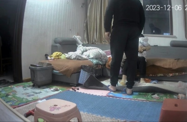 监控视频显示,时间为2023年12月6日21时许,一女子抱着孩子坐在沙发上,一男子背对着镜头,双方发生争执,之后男子狠狠扇了女子一耳光。