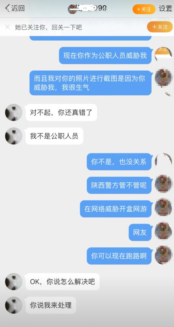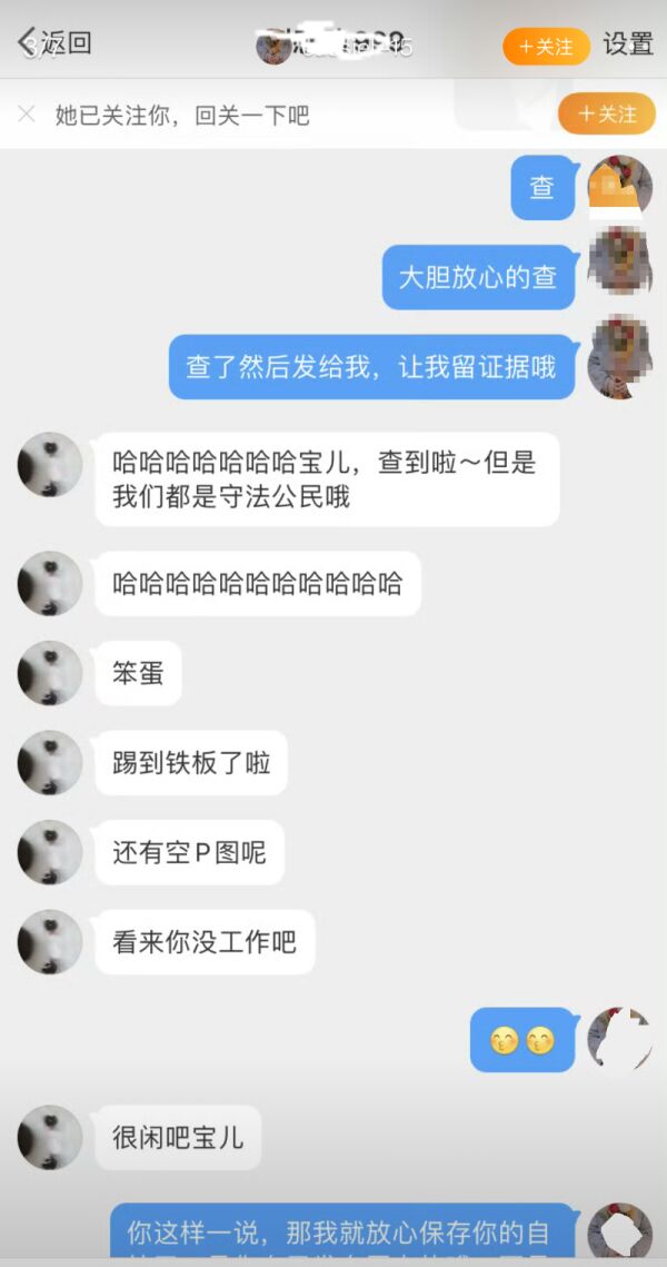 而在8日凌晨,被威胁“人肉”的网民再次发声,“我对此表示非常焦虑和惶恐,并且心情和状态都不佳,以至于完全耽误了我今日的工作。希望能给本公民一个满意合理的解决方式。”