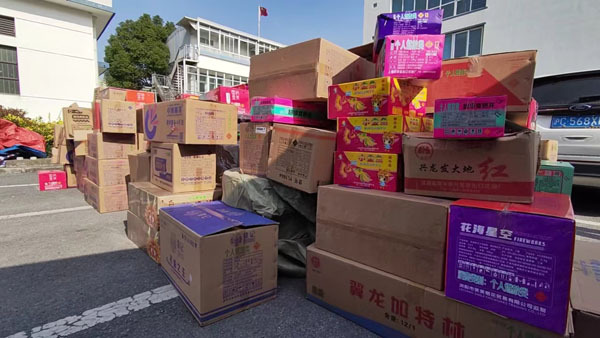 图说:女子家中存放大量烟花爆竹被刑拘 奉贤警方供图(下同)