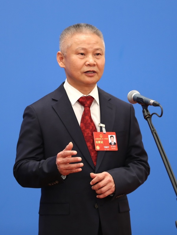 全国人大代表万步炎接受媒体采访。中国日报记者 邹红 摄