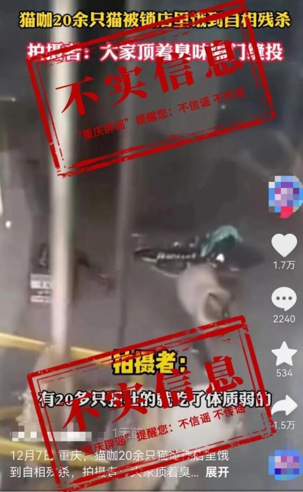 据了解,该猫咖店位于重庆市璧山区璧泉街道晴山路。经向璧山区璧泉街道办事处核实,该猫咖店主因新店装修,将部分猫咪留在原猫咖店内,并定期投喂粮食和水,部分市民误以为店内猫咪无人照料,遂自行投喂劣质猫粮,导致猫咪肠胃受损,排出粪便产生恶臭。网传“猫被锁店内饿到自相残杀”的情况不实。