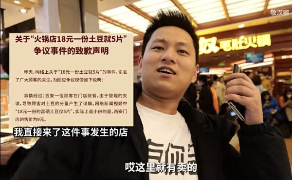 近日,西安一火锅店因“一份土豆18元只有5片”成为网络热点,一位四川博主实地探店挑战天价土豆火锅店。