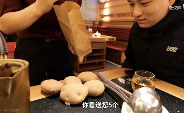 入座后,博主点了5盘土豆以及其他菜品。当博主询问有没有18元5片的土豆时,服务员表示:“18元5份的土豆我给您上不了,我给您送一个其他的土豆。”随后,服务员便拿出了店内的5个土豆布艺周边,送给了这位博主。
