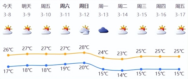 【今日天气】晴天间多云,空气干燥;气温17-26℃;偏东风2-3级;相对湿度30%-85%。