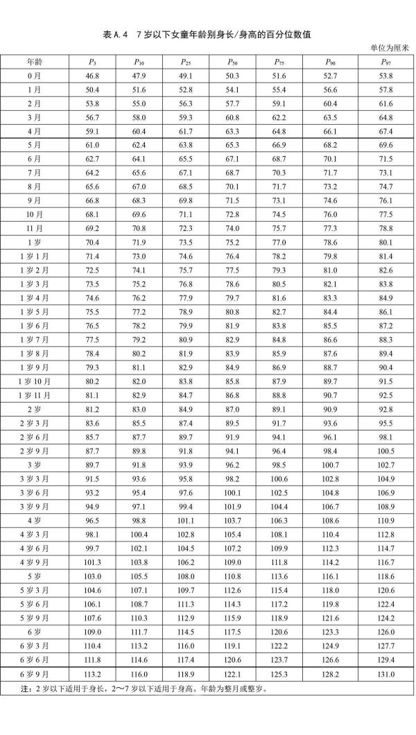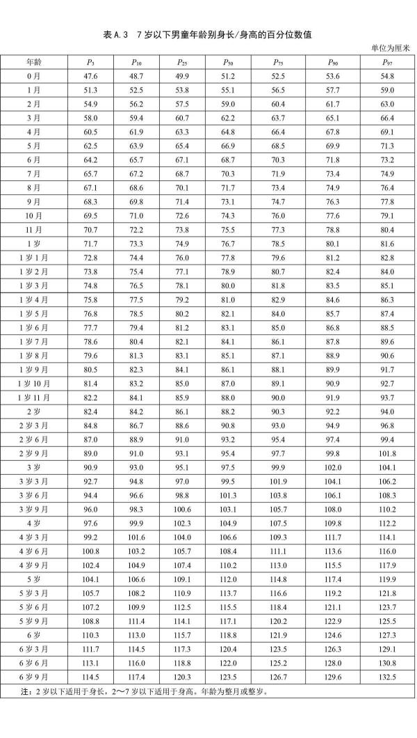 武汉儿童医院儿保科专家肖芳解释,临床现用的标准,是由首都儿科研究所生长发育研究室,根据2005年九省/市儿童体格发育调查数据研究制定,标准表分为男、女版,可参考年龄段为0至18岁。这一标准由儿科、儿童保健、儿童营养、卫生统计及流行病学等方面专家充分论证制定,属于全国范围内较大的样本调查,较符合我国儿童的生长发育情况。