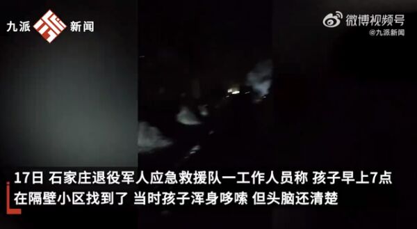 12月16日,河北石家庄。有网友发布寻人启事,称一10岁男孩下午4时许从画室下课未回家后走失,凌晨两点多众人帮忙找孩子未果。17日,家庄退役军人应急救援队一工作人员称,孩子上午7点多在隔壁小区找到了。当时孩子浑身哆嗦但头脑还清楚,将其送医家长到场后撤离。