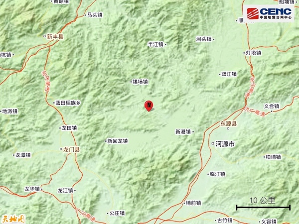 导读:据中国地震台网正式测定,3月8日5时15分广东河源市东源县发生4.5级地震后,3月8日13时21分在广东河源市东源县又发生3.4级地震。