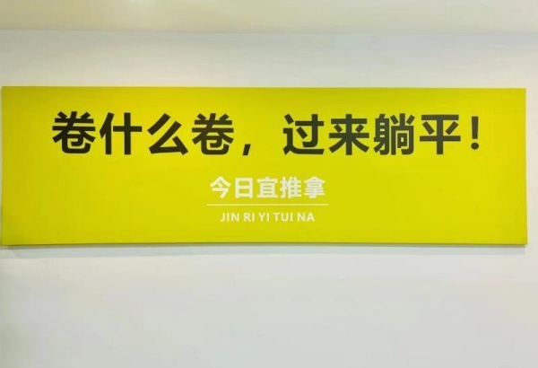 朵朵说,她是在网上团购了套餐券后到线下店面体验的,整个店铺面积不大,但环境非常干净整洁,装修简单轻快,有些地方还写着一些如“赶快躺平”的网络文梗,整体布置就让她感觉很轻松。