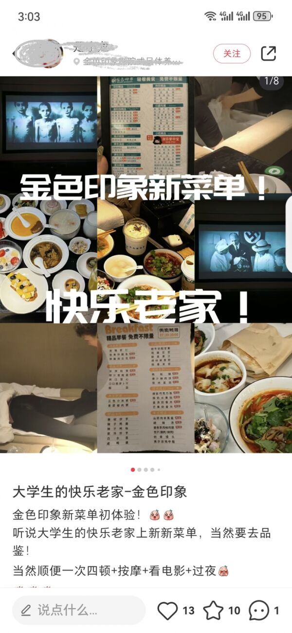 “金色印象足体养生会馆是大学生群体最喜欢去的地方之一。”在西安上大学的朵朵也在金色印象充了会员卡,除此之外,她也是水木和泰式足道的常客。