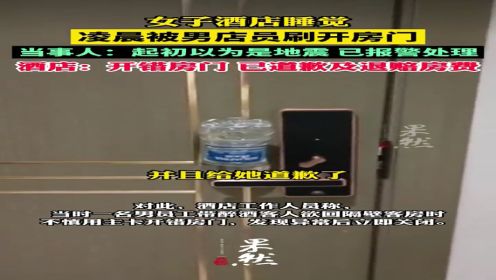 对此,酒店工作人员称:当时一名男员工带醉酒客人欲回隔壁客房时不慎用主卡开错房门,发现异常后立即关闭。事后当事人报警处理,店方已向当事人道歉及退赔房费,当事人也予以认可。