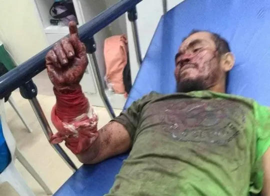 “我感觉现在已经好多了,尽管我的手腕仍然疼痛。”阿莱里亚的伤口见证了这场搏斗的残酷——手臂、脸部和胸口都沾满了鲜血。幸运的是,他未被咬到动脉,而且网纹蟒并不含有毒素。