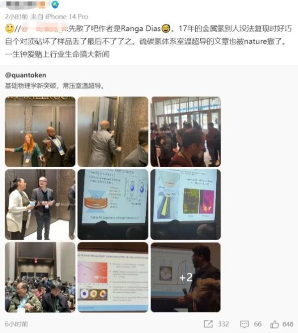另外,也有A股董秘解读今天的美国室温超导技术传闻:“没啥太大产业化价值关系。仍然是1万倍大气压。只不过从200多万倍大气压降到了1万倍而已。实现零下200度比实现1万倍大气压容易和便宜多了。”