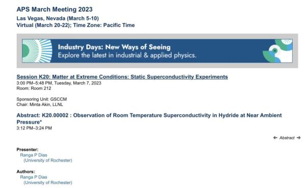 罗切斯特大学的物理学家Ranga Dias在3月7日的美国物理学会会议上表示:“这预示着,对实际应用有用的新型材料已经出现。”