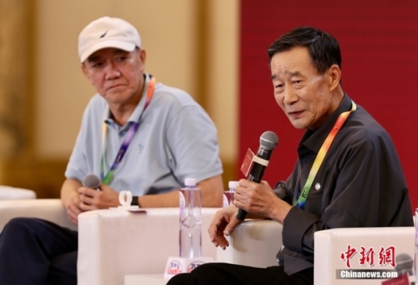 图为李雪健(右)和李幼斌。 中新社记者 易海菲 摄