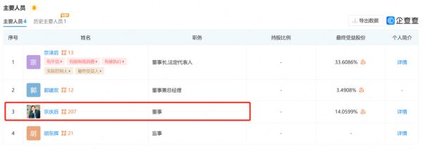 但据媒体报道,娃茅酒业大股东是大理宗盛智能科技有限公司,穿透后主要股东为宗泽后,而据多个公开资料显示,宗泽后为哇哈哈创始人宗庆后的弟弟。