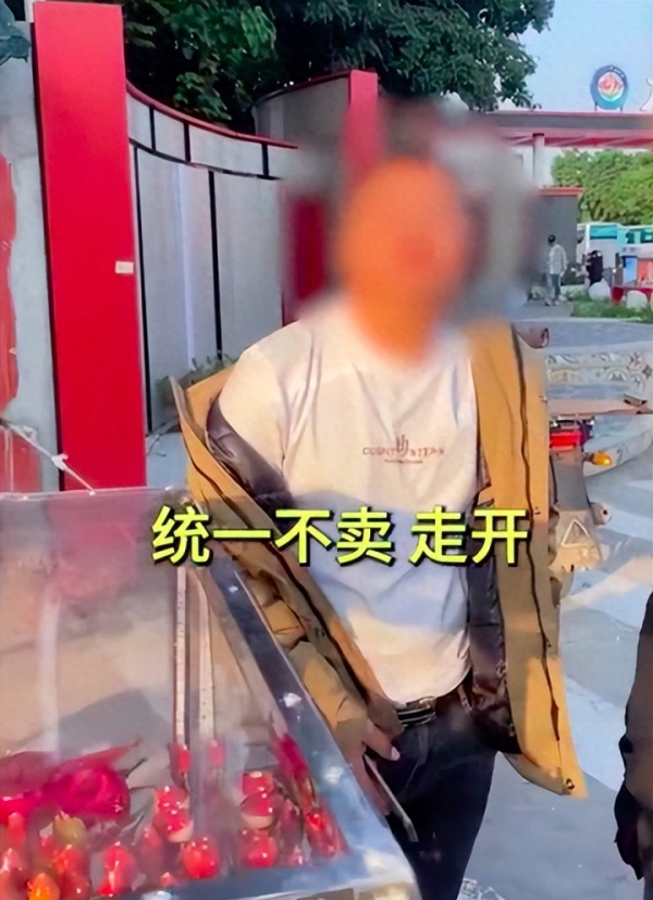 视频中,几位男子挡在女生摊位前干扰生意,有人问价,一男子称“统一不卖,走开。”另一男子还限她周五前离开,否则要拿棍子来。