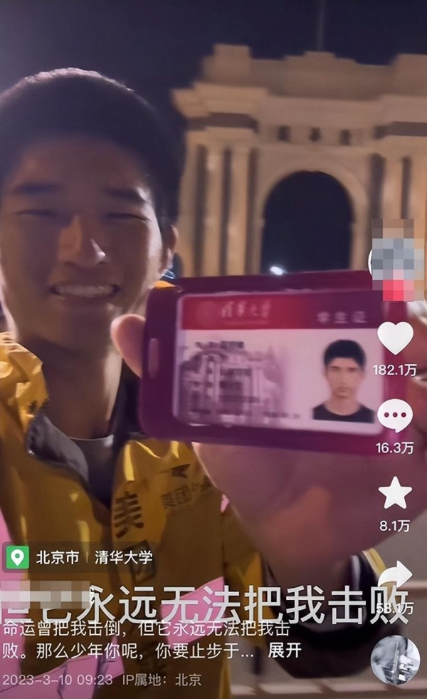 “不是清华的人去送外卖,而是送外卖的人上了清华。”该男子向记者强调说,送外卖是上清华前的事。其实,他在社交平台上都说得很清楚了,网友们不了解事情的来脉去脉,单看一条视频产生了误解,他不希望学校受到伤害,更不希望自己受到网暴。