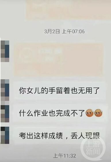 另一张构图截图显示,上述“杨某某老师”疑似对学生家长说“你女儿的手留着也无用,什么作业也完成不了,考出这样的成绩,丢人现眼。”