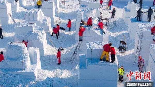 各国选手正在奋力打造作品。太阳岛风景区供图