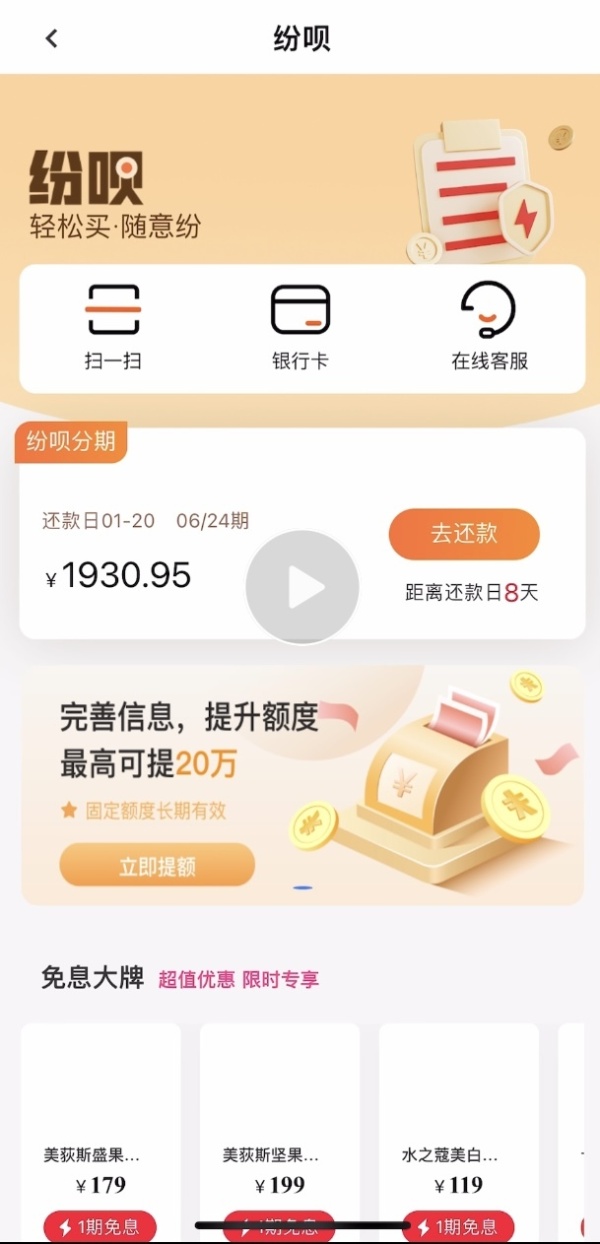 雪丽发过来的录屏显示,其“纷呗”APP界面没有显示贷款总额,只能看到分期24期,每期还钱1930.95元。照此计算,年息约为16.2%。
