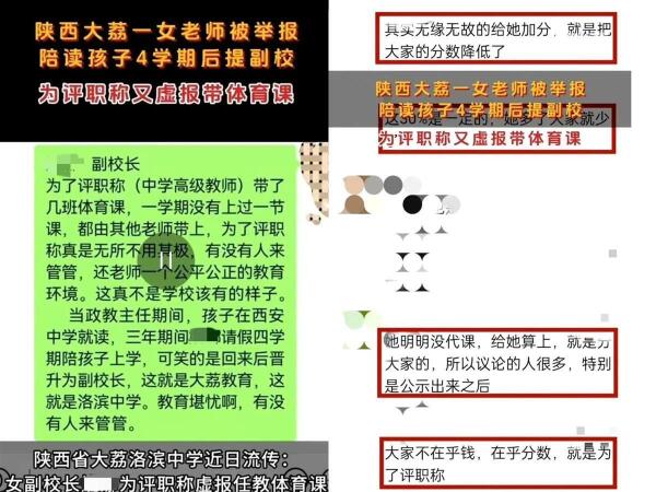 此前,自称是洛滨中学教职工的一名知情人士称,校内确实有教职工曾对姚某“请假陪读回归岗位后升任副校长”一事存疑,最近更多的则是对姚某参评职称条件的质疑。该教职工表示,姚某以前代政治课,被安排给九年级学生代体育课后,有师生反映姚某这学期没有上过体育课或是由他人代上,教学实绩有问题,存在虚报代课的情况。姚某此次参评的职称是高级教师,若存在弄虚作假,对一线教职工不公平,希望相关部门调查核实此事。