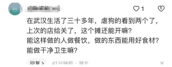 在武汉生活了三十多年,虐狗的看到两个了上次的店给关了,这个摊还能开嘛?能这样做的人做餐饮,做的东西能用好食材?能做干净卫生嘛?