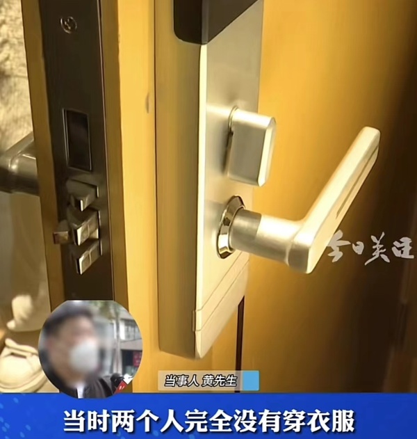 据广东广播电视台《今日关注》,近日,黄先生与女友在深圳市龙岗区入住了一家酒店的大床房,消费188元,黄先生说,他与酒店前台沟通好,将退房时间延长至下午6点。可下午5点多,房门却突然被酒店保洁人员打开。