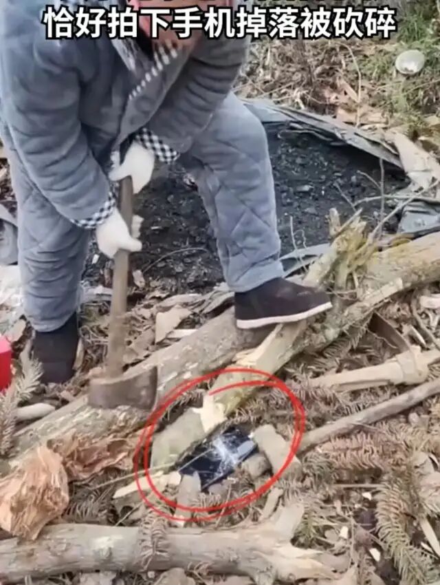 男子砍柴时手机掉落秒变折叠屏【也太巧了吧!男子砍柴手机掉落秒变折叠屏】1月26日,四川泸州。男子砍木头想给老婆做陀螺,谁知手机从兜里掉下碰巧被斧头砍碎。网友:这个陀螺有点小贵。(潇湘晨报)