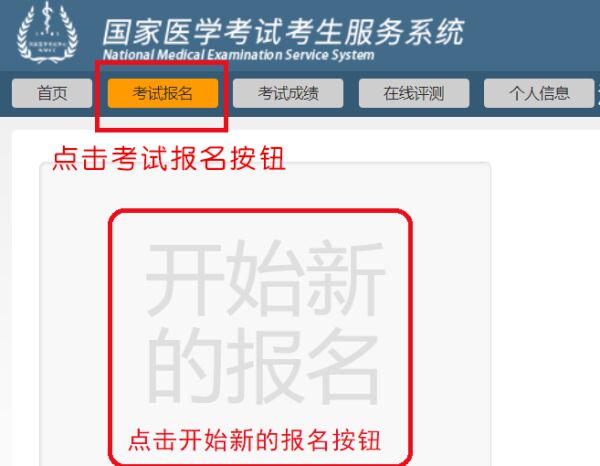 登录成功后,选择上方的"考试报名"黄色按钮,点击开始新的报名