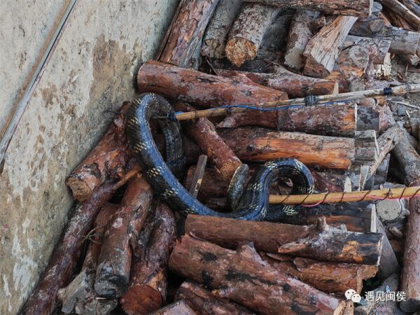 ▲(蜷缩在村民家中的柴堆里的眼镜王蛇)