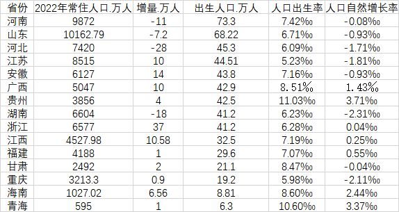 近期,各省份正陆续发布2022年的人口数据。