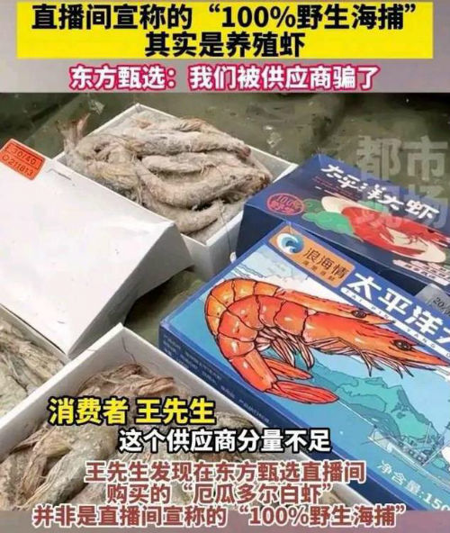 导读:日前,江苏的王先生在“东方甄选”直播间购买了野生大虾,可后来发现其实是养殖的。在王先生起诉后,东方甄选的工作人员联系王先生,称被供应商骗了。