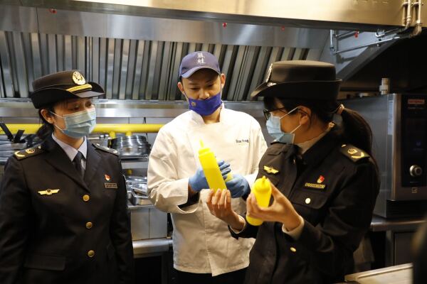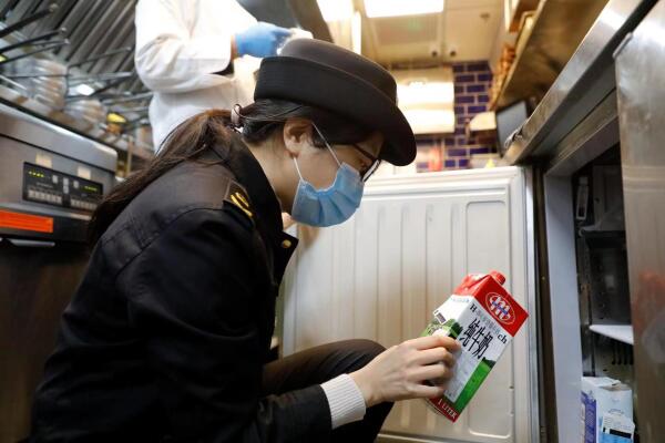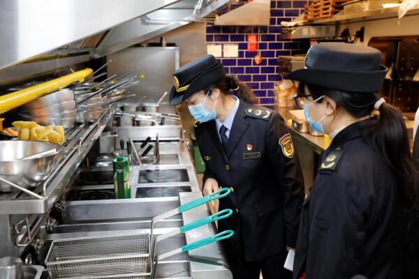 在检查过程中,执法人员发现,该门店存在消毒记录不全,分类抹布乱放、后厨冷荤间使用紫外线消毒灯不规范、洗碗间工作人员对流程操作不规范等情况。