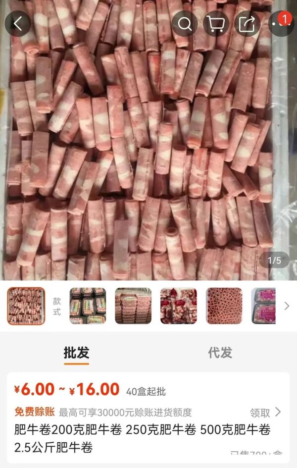 值得注意的是,即便是原切肉片,也有降低成本的操作空间。批发商王先生透露,拿货价在25元一斤的原切羊肉卷,“通常用5斤半的肉、2斤半的羊油,弄成8斤重的肉卷”,“加工时将肥肉、瘦肉夹在一起速冻,不会散。油便宜,羊肉本身自带,但有一部分是后加的,正常牛羊肉片这个价下不来。”