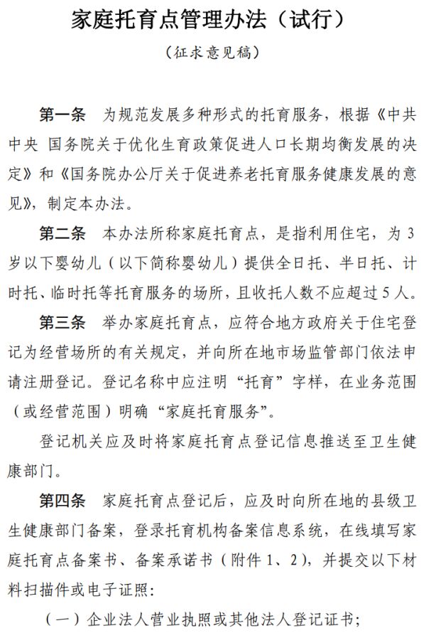 《家庭托育点管理办法(试行)(征求意见稿)》