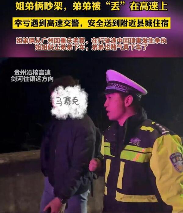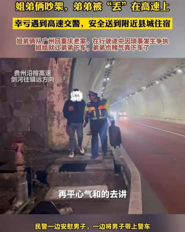 2月2日晚在贵州,一对姐弟因吵架而引发了一场意外。由于争吵激烈,弟弟被姐姐留在了高速公路上,这一举动无疑给这个家庭带来了巨大的困扰。幸运的是,巡逻的交警发现了弟弟并将其安全送回家。这一事件引发了人们对于家庭教育中的沟通与安全意识的关注。