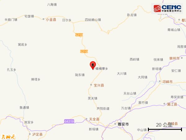 据中国地震台网正式测定,3月17日9时4分在四川雅安市宝兴县发生3.2级地震,震源深度8公里,震中位于北纬30.52度,东经102.83度。