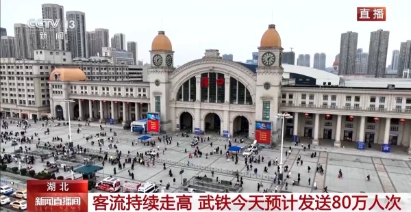 今天,中国铁路武汉局预计发送旅客80万人次左右,128个客运站客流持续走高,共加开旅客列车133列。其中,宜昌、襄阳、十堰至武汉,武汉至上海、广州、北京等方向客流较大。