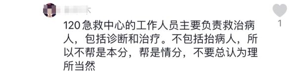 120急救中心的工作人员主要负责救治病人,包括诊断和治疗。不包括抬病人,所以不帮是本分,帮是情分,不要总认为理所当然