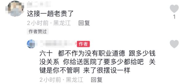 根据女子事后的描述,她住的楼道有电梯,都不需要两人帮忙抬,只要把推车和担架给她拿上就行,可即便如此,对方也不愿意拿,就说不归他们管,所以才会如此生气。就这样耽误了一个多小时,已经失去了叫120的意义。