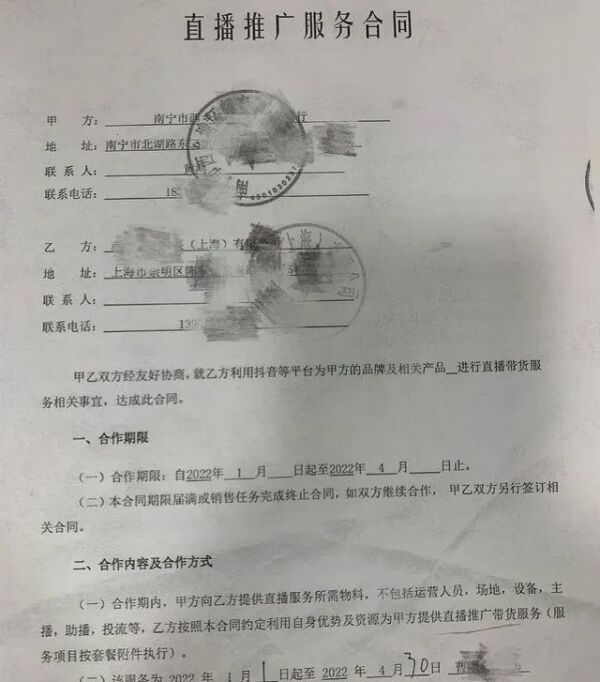 签订直播服务合同后,南宁某商贸公司支付了7万元预付款