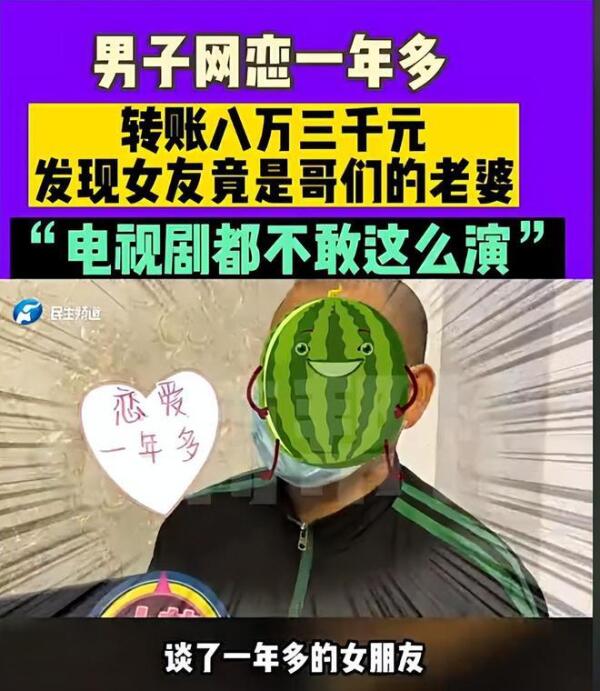 据小莉帮忙,近日,许昌朱先生反映,自己多年来一直在缅甸种西瓜,想多挣钱娶媳妇,经过好友小李认识了现在的网恋对象,由此开始了长达一年多的网恋,期间向女方陆续转账了八万多。可是就在准备回国奔现的时候,被告知这个“女友”是哥们的老婆。