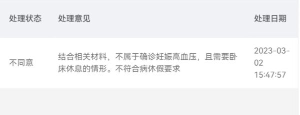 丁女士介绍,她从怀孕半年来一直是通过这种方式请假休息,最后一次请假截止日期为2月26日。27日、28日两次产检,分别以产检假和年假名义请假,都获得批准,但同日提交的长假申请未被批准。