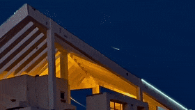 发光物体类似火箭发射的光影,拖着长长的尾巴,尾部有类似喷射的尾翼。