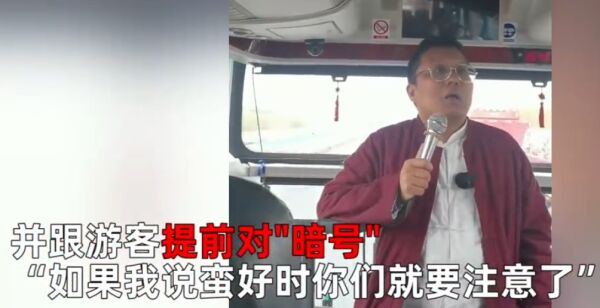 根据视频显示,事情发生在3月19日。“记住,不用给我‘捧场’,什么也不用买,你们喜欢、要买,我不拦你们。”在一辆类似旅游大巴的车上,小黑诸鸣手拿话筒对游客说道,“看到好看的,你如果吃不准,可以问我,当面我不会说的。”随后,他便跟游客面授机宜、对起暗号。“你在人家店门口问我是真的假的,我都会说蛮好蛮好,我说蛮好的时候你们注意了,自己上点心,我不能说不要买,不然得被打死;我要跟你说好的,你赶紧买。”