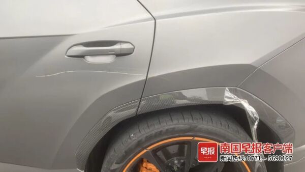 ▲兰博基尼车尾部划痕。秀峰交警供图