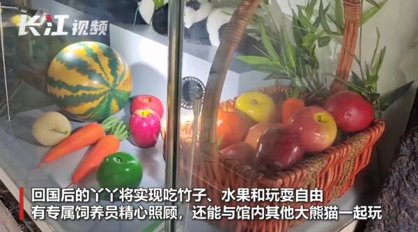 长江日报记者此前在北京动物园熊猫馆看到,“萌萌”等多只大熊猫在园区怡然自得,工作人员说“丫丫”的房间、娱乐休闲设施、饲养方案、医疗保障、饲料供应等都准备好了。回国后的“丫丫”将实现吃竹子、水果和玩耍自由,有专属饲养员精心照顾,还能和馆内其他大熊猫一起玩。