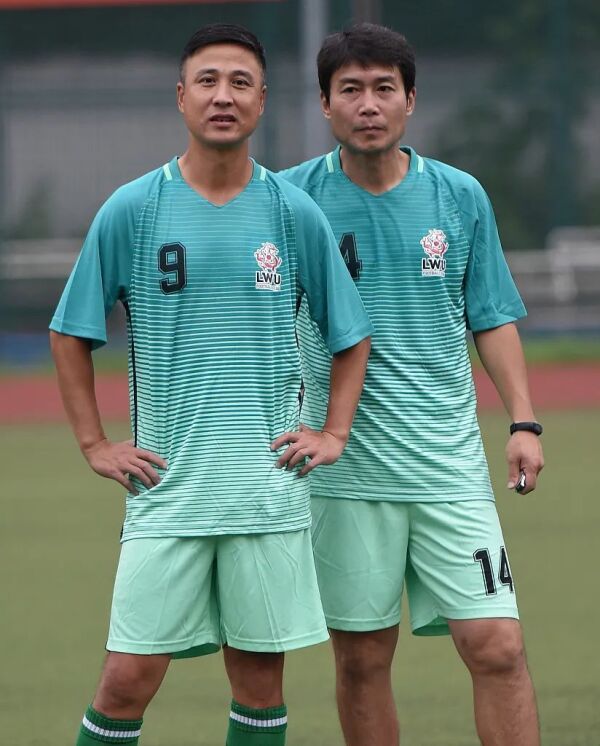 祁宏(左)、申思(右)出狱后参与业余足球比赛。图/视觉中国