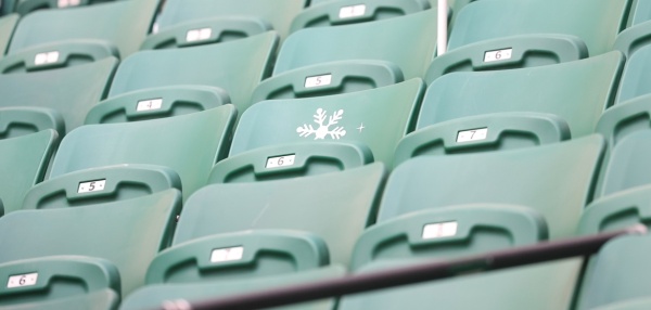 国安为因病去世的铁杆球迷杨雪保留专属座椅,并印上了雪花和星星。 新京报记者 王飞 摄