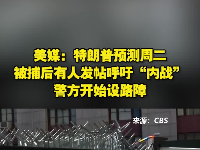导读:美媒:特朗普预测将被捕后,有人发帖呼吁内战,警方开始设路障,为对特朗普可能的起诉做准备。这将是首个对总统的刑事起诉。
